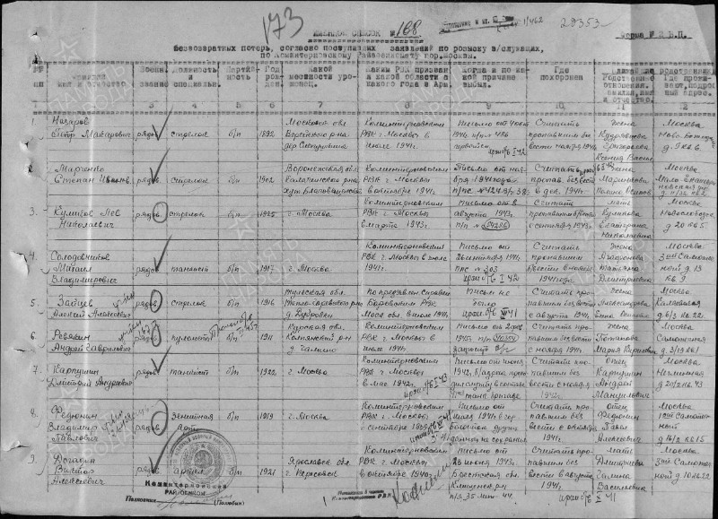 ![]() Именной список потерь по розыску военнослужащих Коминтерновского военкомата |
